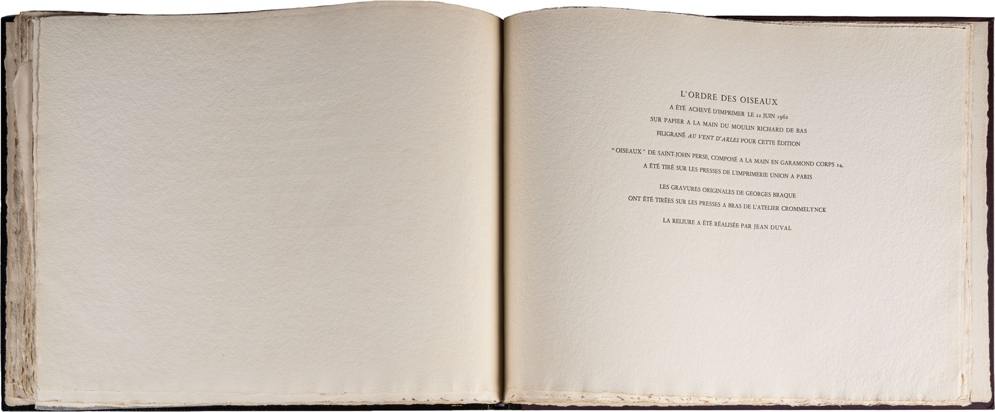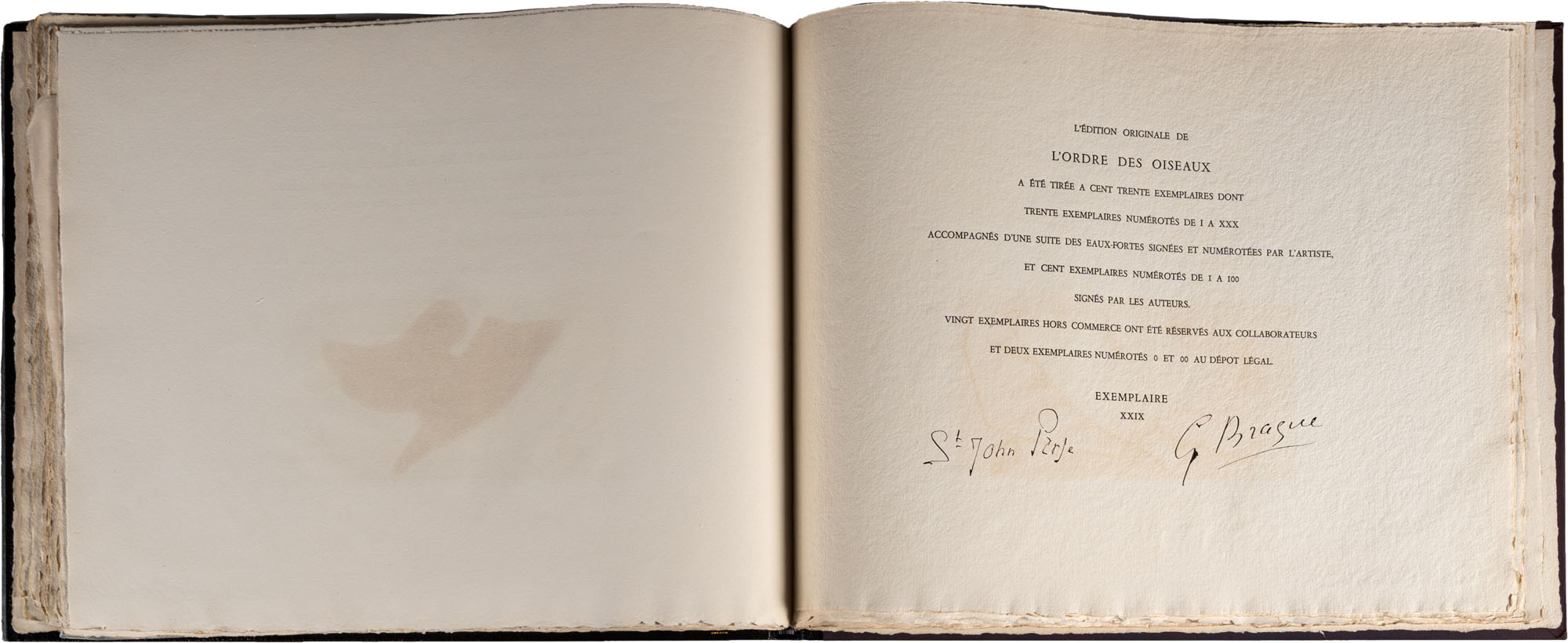 Georges Braque - L'ordre de oiseaux - Saint - John Perse - Le vent D'ArlesParis, 1962Tiratura di 130 esemplari di cui solo 30 in numeri romani. La nostra copia è la n. XXIX