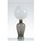Lampada da tavolo ad una luce della serie “Opaline” in vetro incamiciato, incolore, bianco e grigio sfumato, corpo a campana rovescia, diffusore sferico in vetro lattimo. Struttura in ottone. Firma all’acido Venini Murano Italia, etichetta originale dell’epoca.