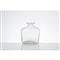 Vaso della serie “Efeso” in vetro soffiato di colore ghiaccio ottenuto con la tecnica della colorazione a caldo senza fusione, corpo a bottiglia, cubico e schiacciato nella parte inferiore con basso collo a svasare, bocca piana circolare.