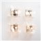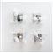 Quattro lampade da parete ad una luce modello “LP 263", struttura in metallo cromato con diffusore quadrato composto da quattro lastre incastrate e sagomate in vetro corteccia incolore parzialmente colorato lattimo.