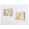 Coppia di lampade da parete a due luci, struttura in metallo con diffusore rettangolare in vetro corteccia incolore e ambra.