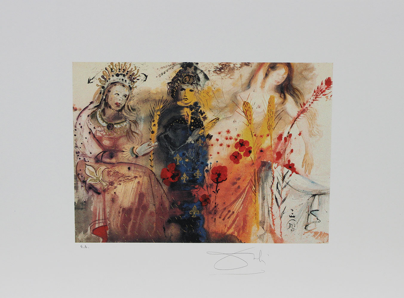 Dalì Salvador Senza titolo litografia su carta, cm. 50x68, es. E.A. firmata in basso a destra, timbro a secco in basso a sinistra, etichetta Edición Gaceta Española de Arte Contemporáneo di Madrid al retro senza cornice
