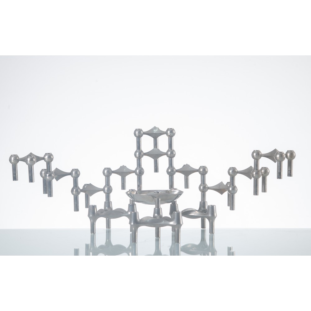 Portacandele composto da quattordici moduli impilabili modello "Stoff Nagel" in lega di zinco.