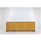 Sideboard in legno di betulla, piano rettangolare, sul fronte un vano chiuso da due sportelli a battente, quattro cassetti ed un vano chiuso con anta battente. Marchio di produzione.