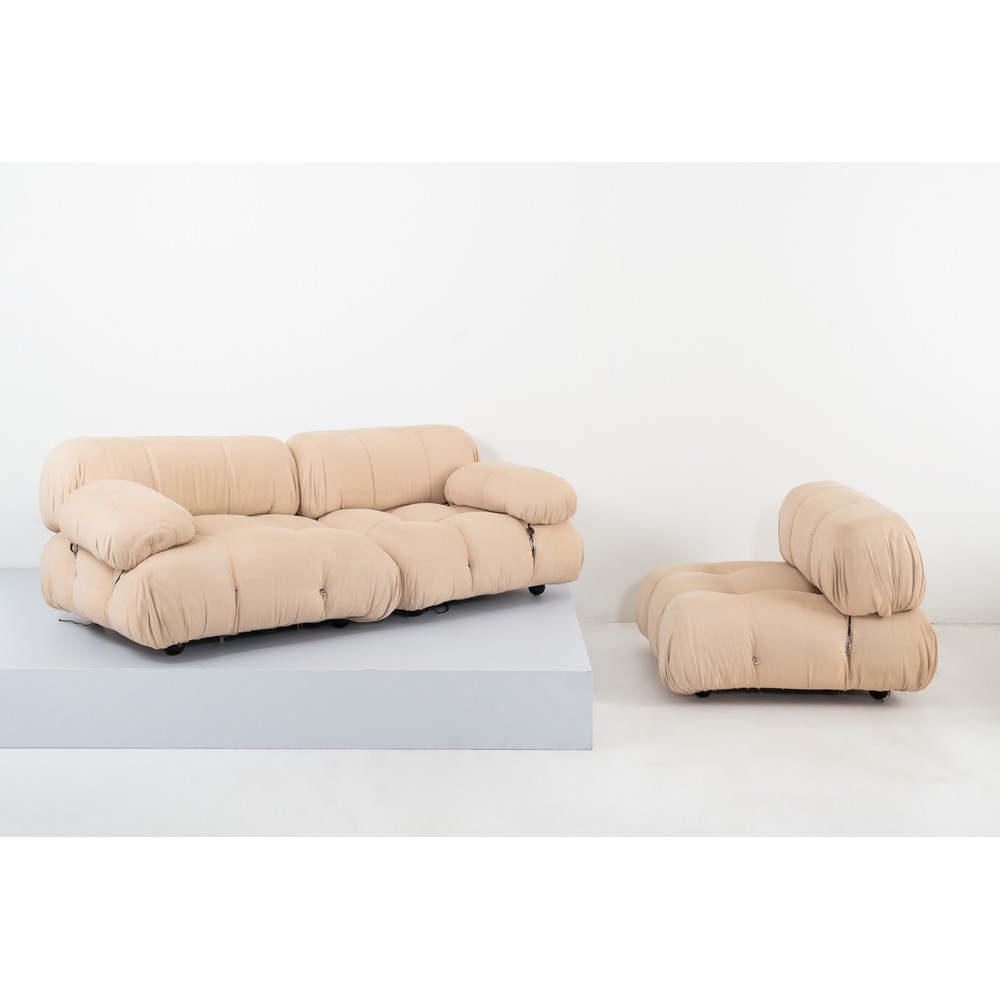 A "CAMALEONDA" MODEL SOFA AND ARMCHAIR BY MARIO BELLINI.