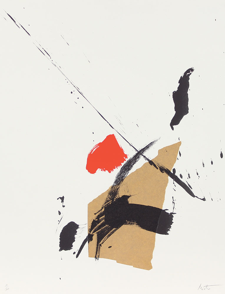 Miotte Jean Senza titolo litografia e collage su carta, cm. 65,5x50,5, es. 19/100 firmata in basso a destra, timbro a secco Atelier Saviera di Saint-Paul-de-Vence e timbro in filigrana BFK Rives France in basso a destra senza cornice