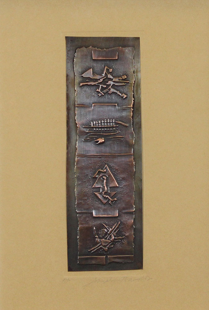 Pomodoro Arnaldo Senza titolo calcografia su rame, cm. 28x9, es. 9/90 firmato in basso