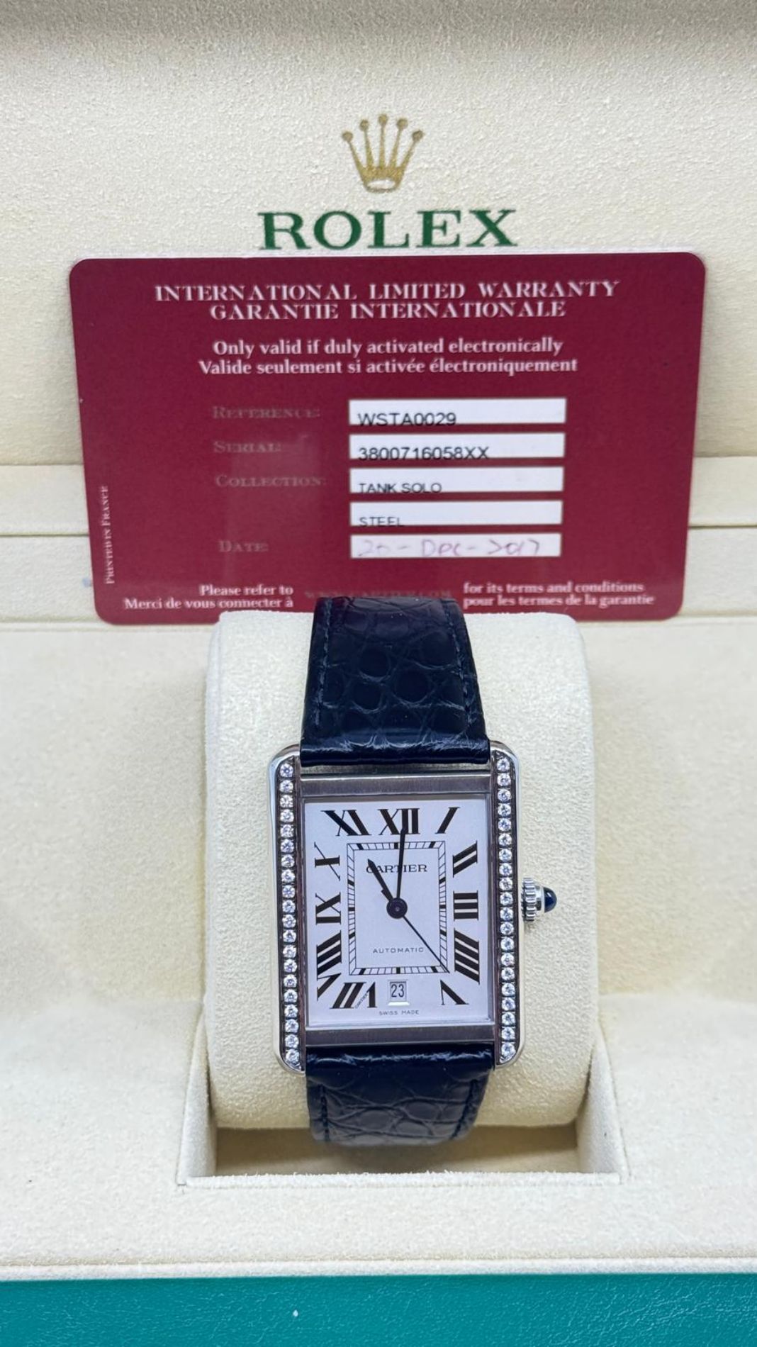 Marca Cartier Modello (Orologio) Tank Solo Numero di referenza WSTA0029 Carica Automatico Materiale della cassa Acciaio Materiale cinturino Pelle Anno di produzione 2017 Con documenti originali, no box Carica Automatico Cassa Materiale della cassa Acciaio Diametro 31 x 41mm Materiale cinturino Pelle Colore cinturino Nero Brillanti naturali aftermarket - COMMISSIONE D’ASTA 25%