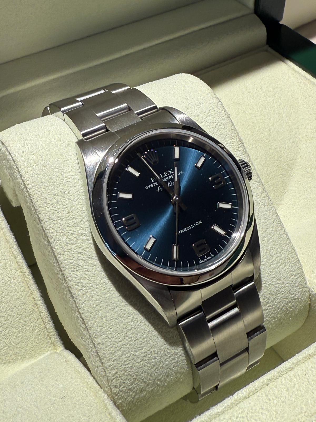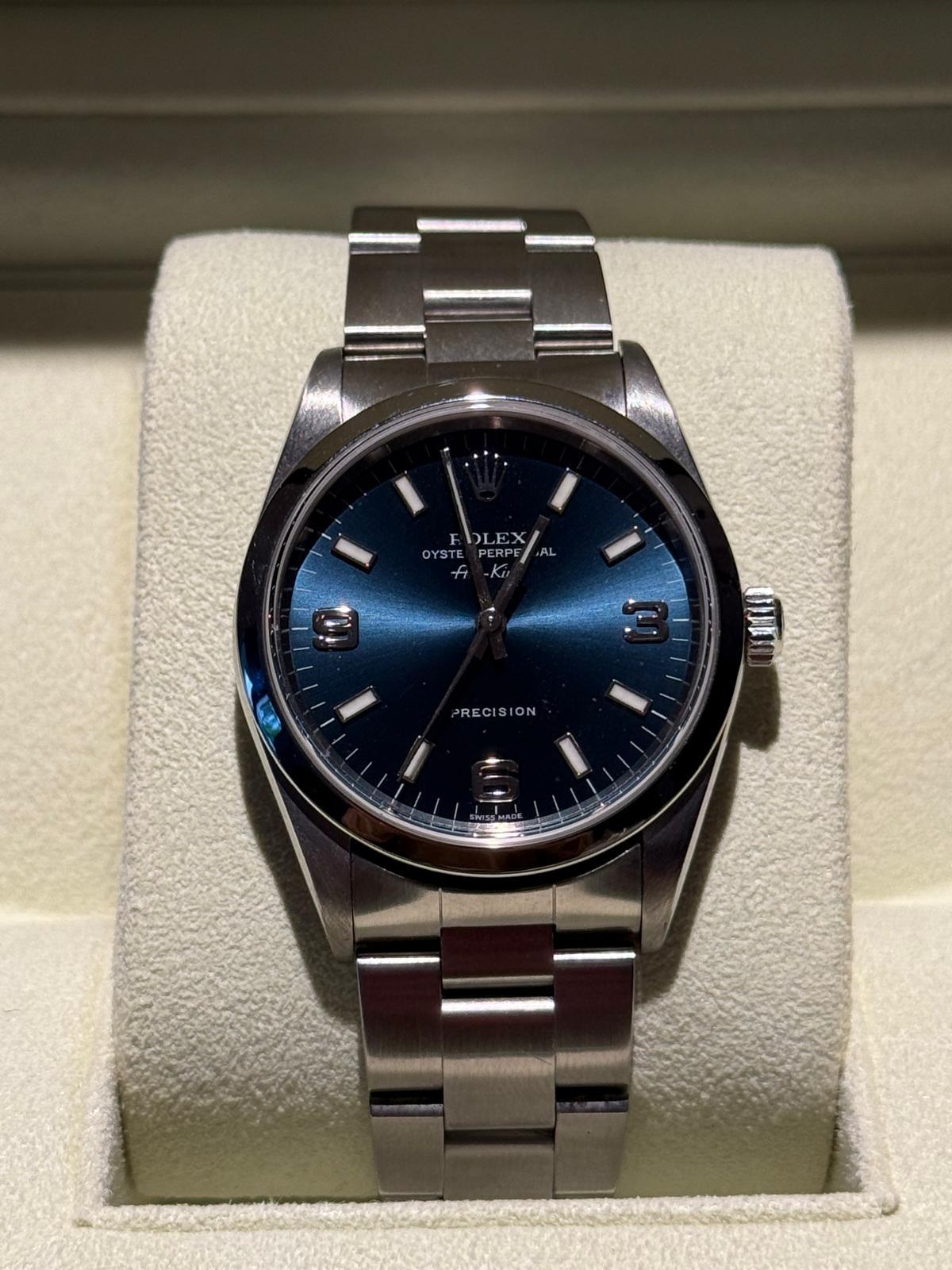 Marca Rolex Modello (Orologio) Air King Numero di referenza 14000M Carica Automatico Materiale della cassa Acciaio Materiale cinturino Acciaio Anno 1990/91 Condizione Ottimo (di seconda mano, segni di usura assenti o appena visibili) documenti originali, no box Carica Automatico Cassa Materiale della cassa Acciaio Diametro 34 mm Impermeabile 10 ATM Materiale lunetta Acciaio Vetro Vetro zaffiro Cinturino Materiale cinturino Acciaio Colore cinturino Acciaio Chiusura Déployante Materiale chiusura Acciaio - COMMISSIONE D’ASTA 25%