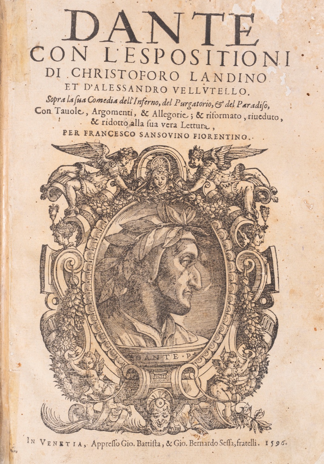 Dante Alighieri (Firenze 1265 - Ravenna 1321) - Dante con l'espositioni di Christoforo Landino, et d'Alessandro Vellutello...& ridotto alla sua vera lettura, per Francesco Sansouino fiorentino, 1596