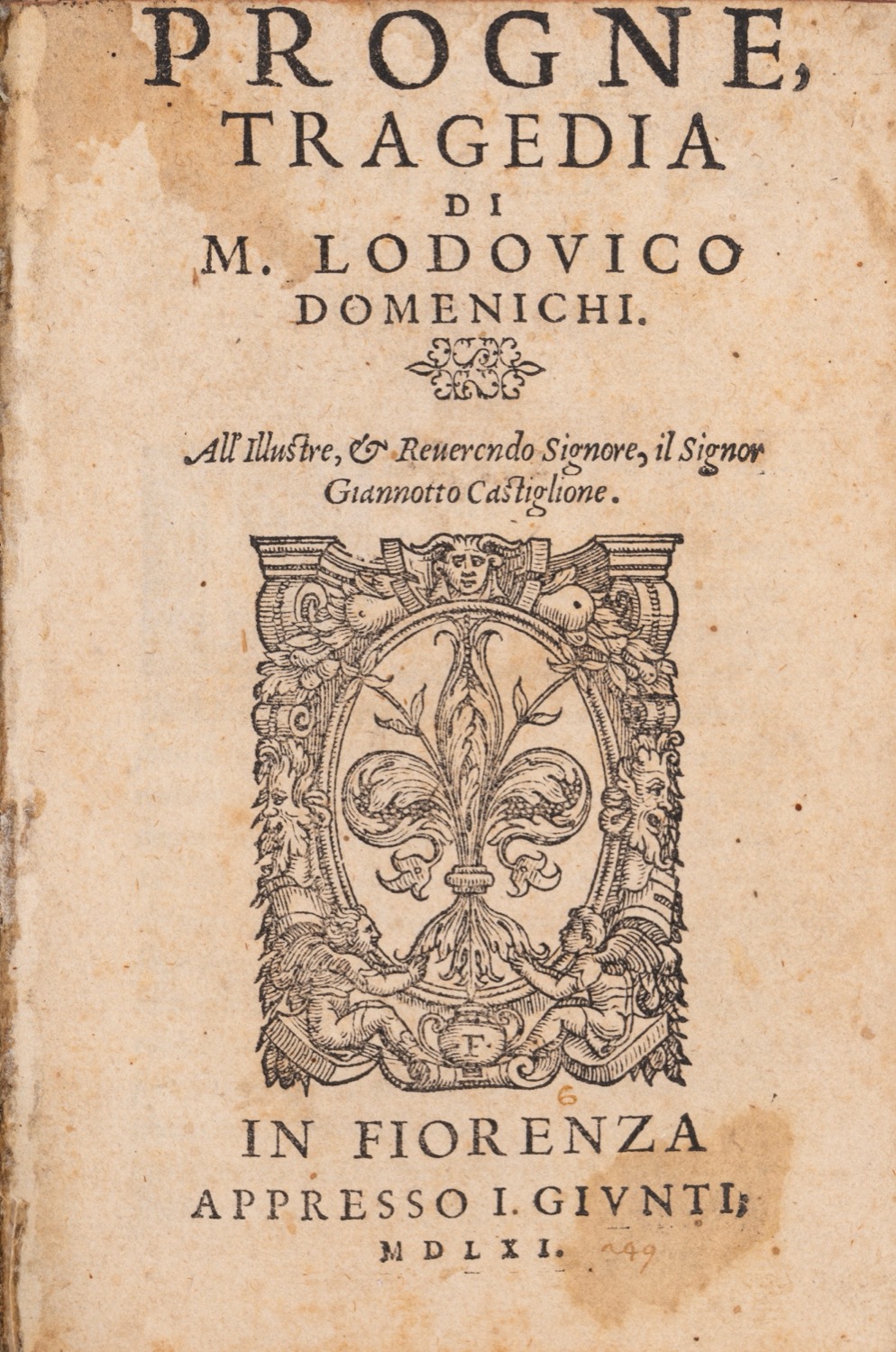 Lot 67 | Domenichi, Lodovico - Progne, Tragedia di m. Lodovico Domenichi, 1561