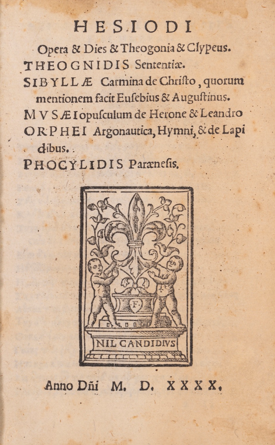 Lot 70 | Esiodo - Hesiodi Opera & dies & Theogonia & Clypeus. Theognidis sententiae, 1540