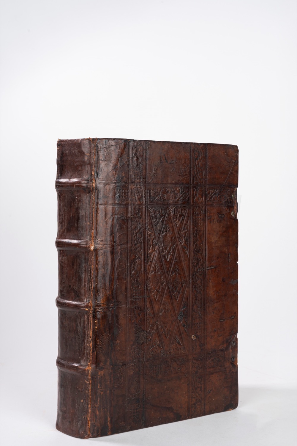 Basilea, Curion, 1523. In folio. Legatura antica in vitello su asticelle. Dorso con 4 nervi. Piatti con decorazione a freddo. Belle bordure incise in legno sia nel frontespizio che nella seconda carta. Capolettera, fregi e testatine. Marca tipografica al fine. Leggere bruniture, segni di penna e dorso della legatura rifatto.