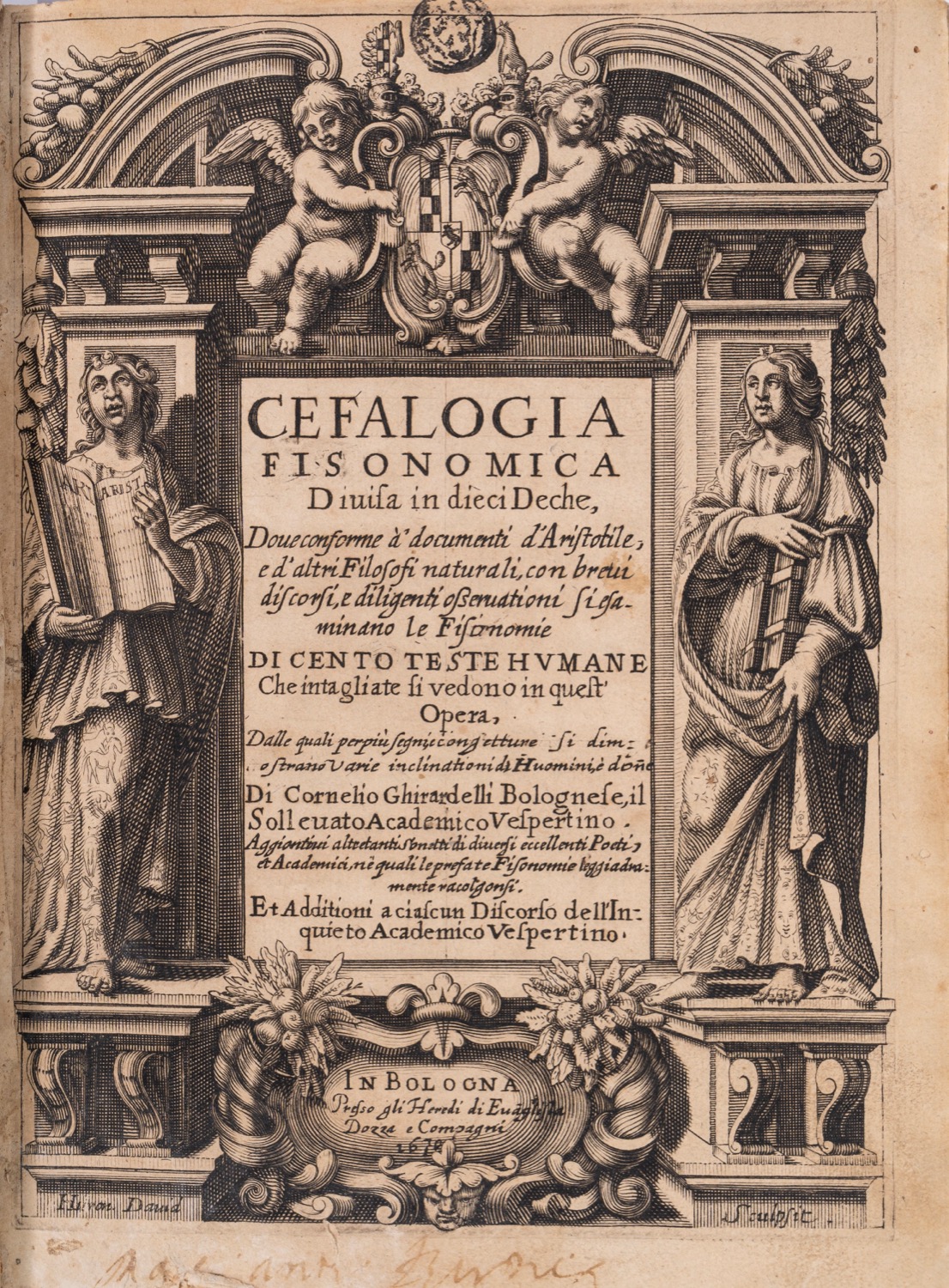 Cornelio Ghirardelli - Cefalogia fisonomica divisa in dieci deche, dove conforme a' documenti d'Aristotile, e d'altri filosofi naturali, con brevi discorsi, e diligenti osservationi si esaminano le fisonomie di cento teste humane, 1670
