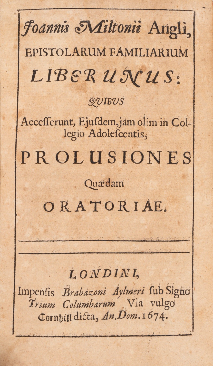 Milton, John - Epistolarium Familiarium liber unus, 1674