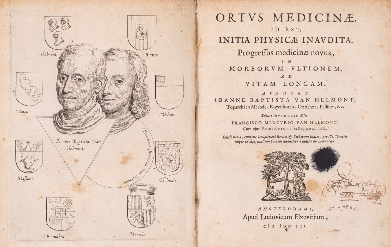 Ioannis Baptistae Van Helmont, ... Opuscula medica inaudita, 1652 con frontespizio proprio e marca tipografica.