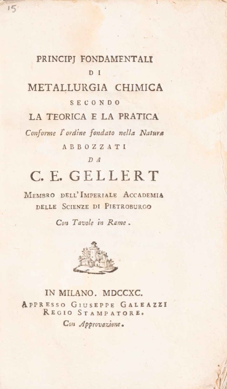 Christlieb Ehregott Gellertgen - Principi fondamentali di metallurgia chimica secondo la teorica e la pratica conforme l'ordine fondato nella natura abbozzati da C.E. Gellert, 1790