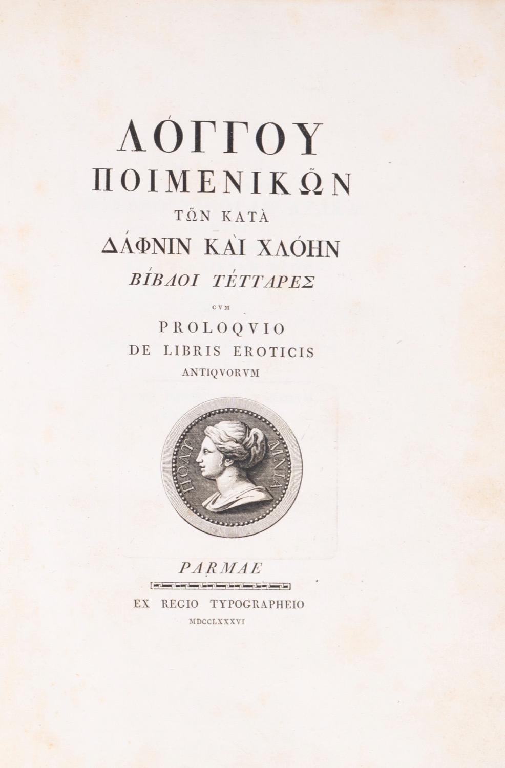 Longo Sofista - Giambattista Bodoni - Longou Poimenikon ton kata Daphnin kai Chloen bibloi tettares cum proloquio de libris eroticis antiquorum., 1786