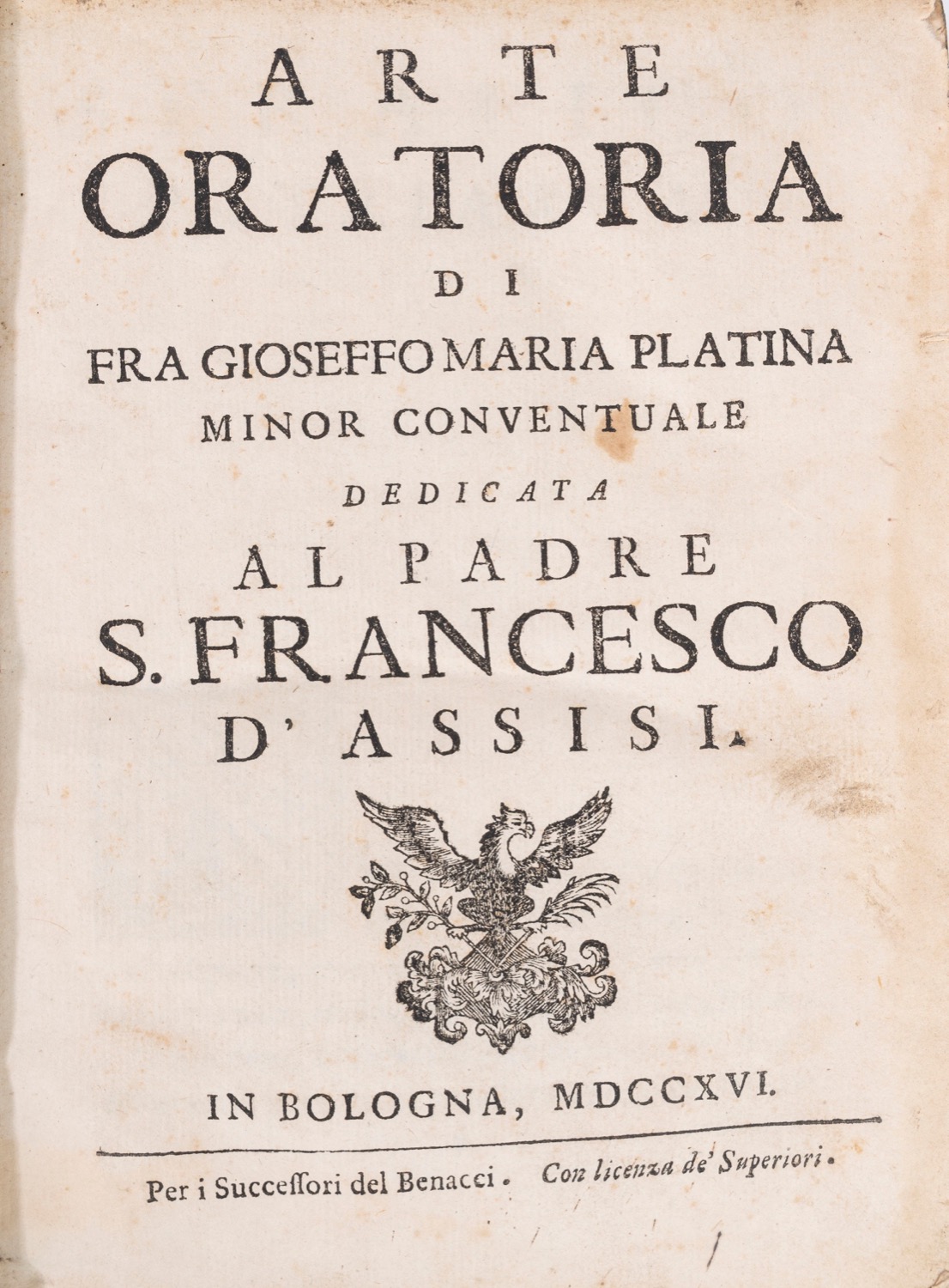 Giuseppe Maria Platina - Arte Oratoria di Fra Gioseffo Maria Platina minor conventuale dedicata al padre S. Francesco d’Assisi, 1716