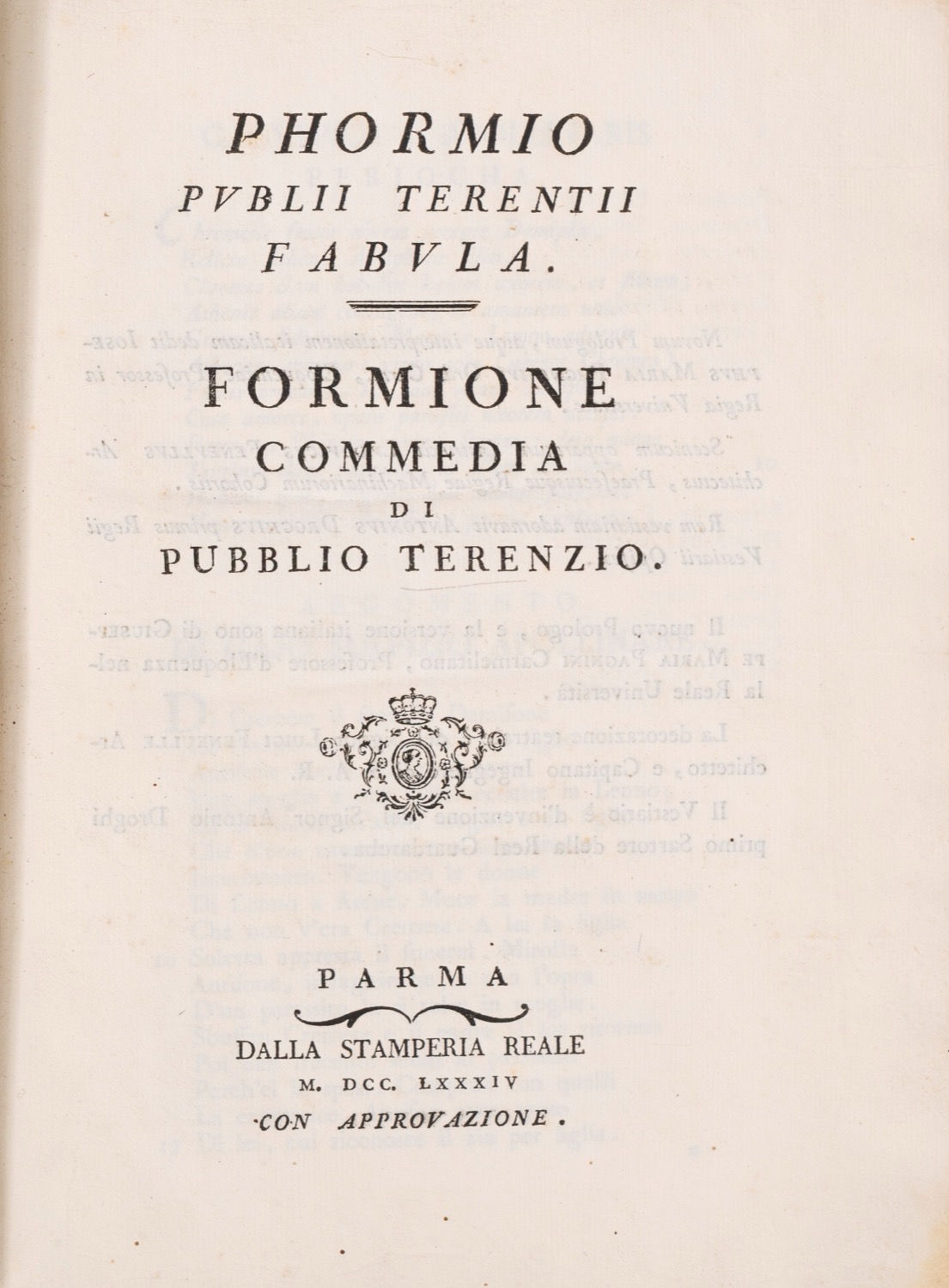 Terenzio Afro, Publio - Phormio Publii Terentii Fabula. Formione commedia di Pubblio Terenzio, 1784