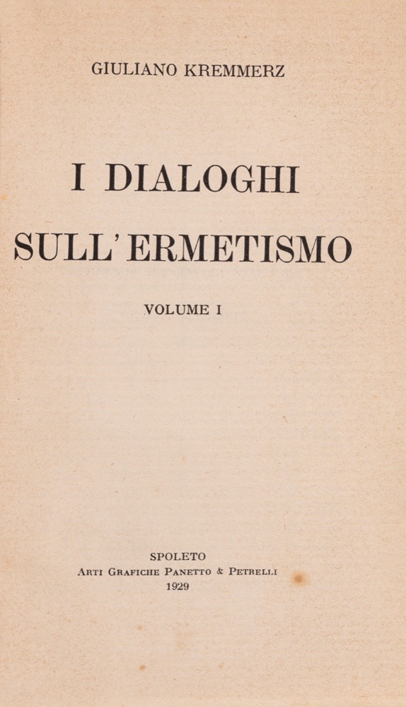 Lot 272 | Giuliano Kremmerz - I dialoghi sull'Ermetismo - Volume I, 1929