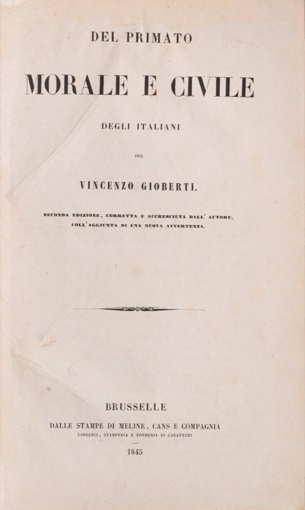 Vincenzo Gioberti - Del primato morale e civile degli italiani, 1845