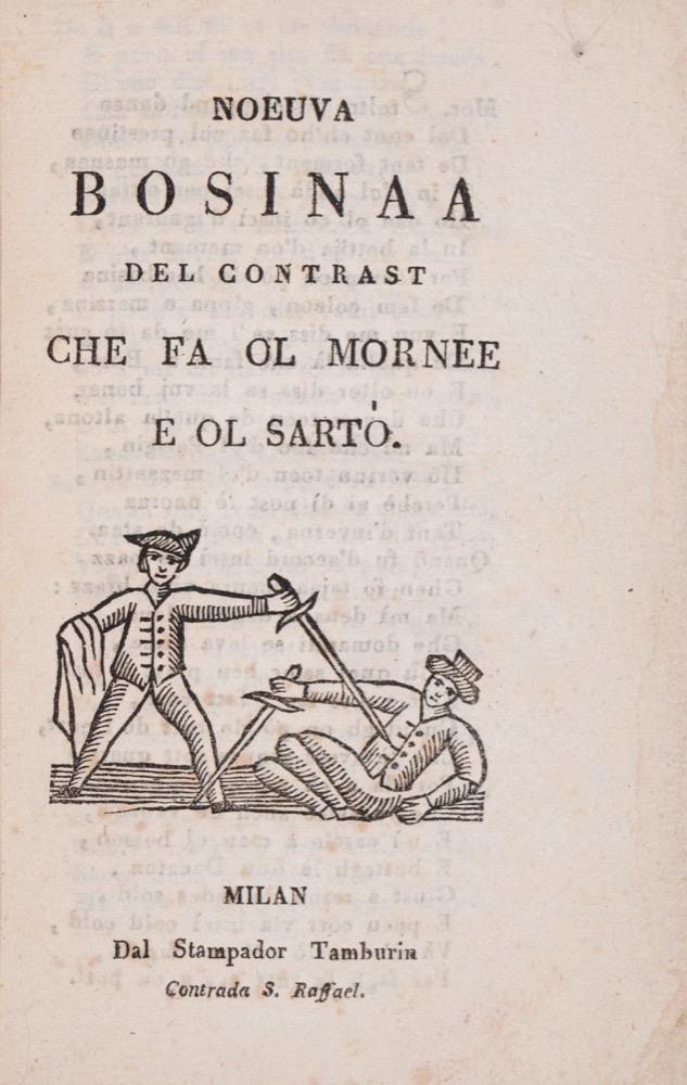 Ricca raccolta, di cui si forniscono alcuni titoli: Noeuva Bosinaa del contrast che fa ol mornee e ol sarto, Noeuv Dialog tra mari' e miee, trappolon e tapella. Noeuva Bosinaa sora ai tosan, La conversazion ridicola e rabiosa tra duu pader la miee e i tosan, Dialogo tra il maestro veneziano e la moglie milanese, Noeuva Bosinaa ossia ridicol inconter di duu vedof dialog Sora Tomas e Balborin, Noeuva Bosinaa sora al temp de carnevaa dove se legg liberament quel che suzzed generalment, Bosinaa sora al testametn del carnevaa.