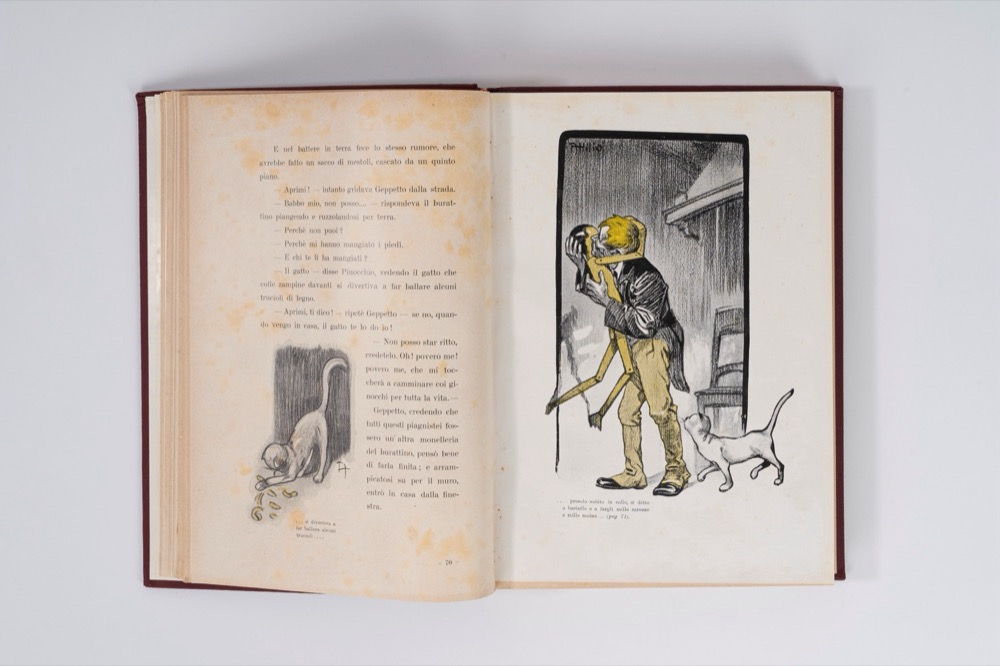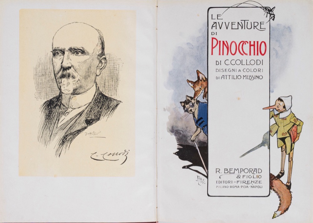 La famosa prima edizione a colori e di lusso illustrata da Attilio Mussino con oltre 400 immagini. Opera tecnicamente e artisticamente bellissima che ebbe un successo enorme e conobbe un'infinità di riduzioni e adattamenti.Firenze, R. Bemporad & figlio, 1911. In 4°. Legatura in piena tela. Dorso con tassello. Timbro al contropiatto. Numerose illustrazioni a colori a piena pagina e a due o tre colori nel testo di Attilio Mussino, ritratto dell'autore. Leggero ingiallimento delle pagine