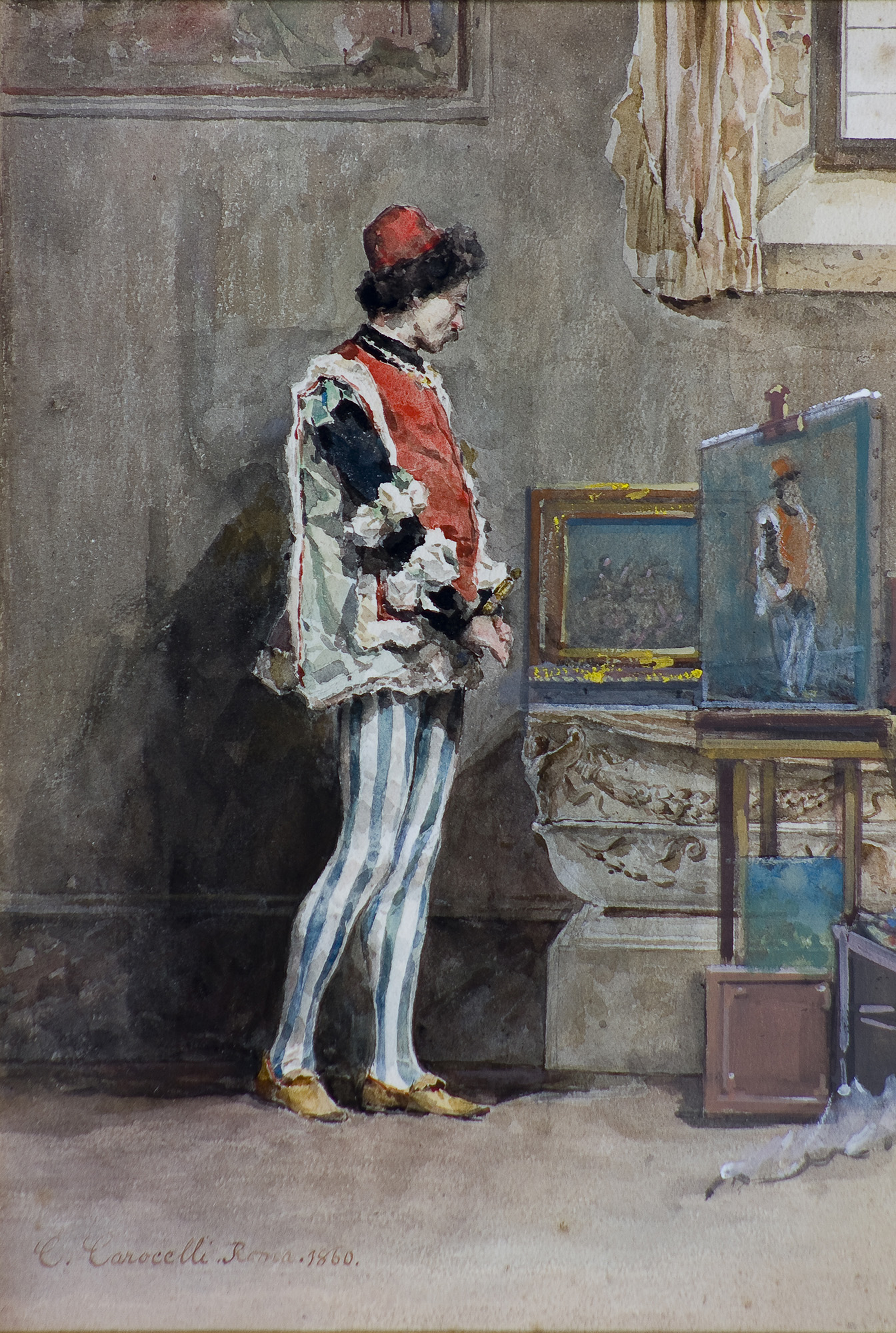 Cesare Caroselli 1847-1927 Figura ed il suo ritratto, 1860 Tecnica mista su...
