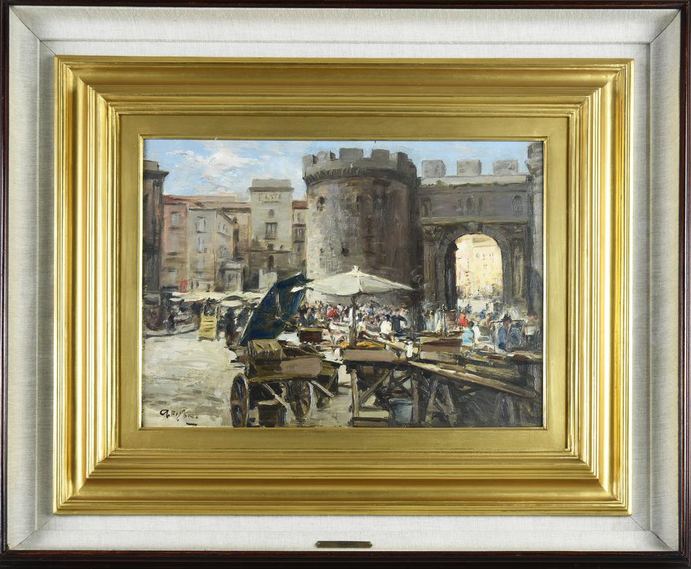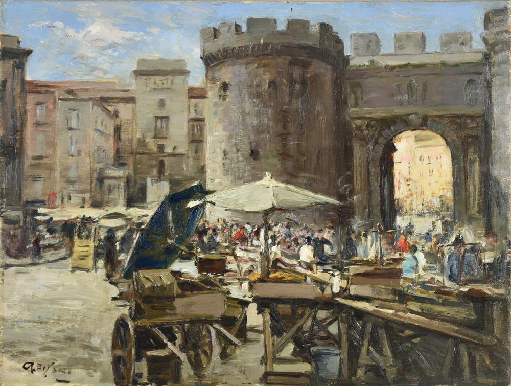 Gustavo Pisani PORTA CAPUANA olio su tavola, cm 30x40 firma sul retro:...