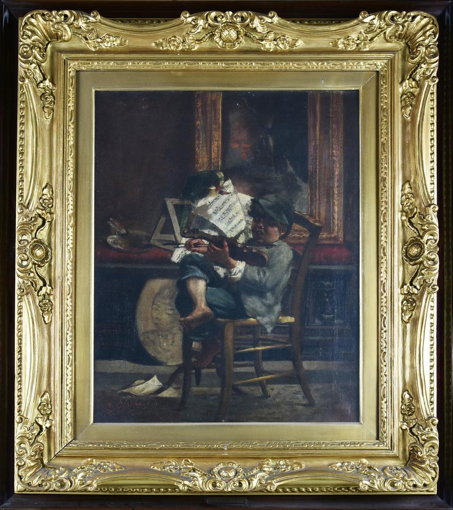 Pittore italiano del XIX secolo PICCOLO VIOLINISTA olio su tela, cm 53,2x40...