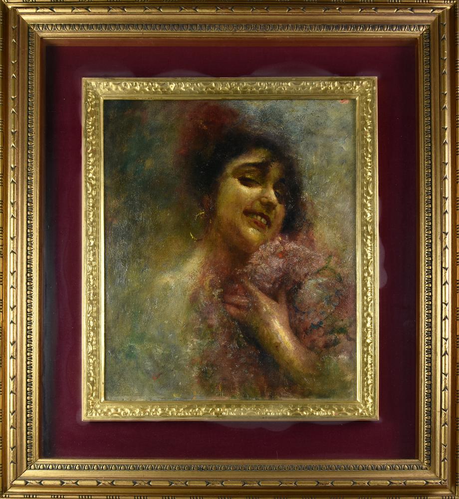 Scuola degli inizi del XX secolo FANCIULLA olio su tavola, cm 54,5x45,2