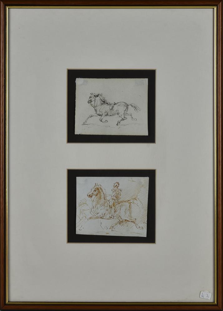 Emilio Lapi BOZZETTI UNO CON CAVALLO E L'ALTRO CON CAVALIERE china nera e...