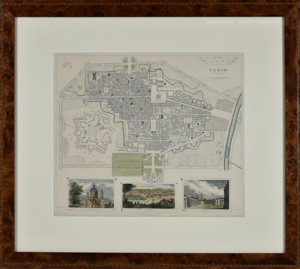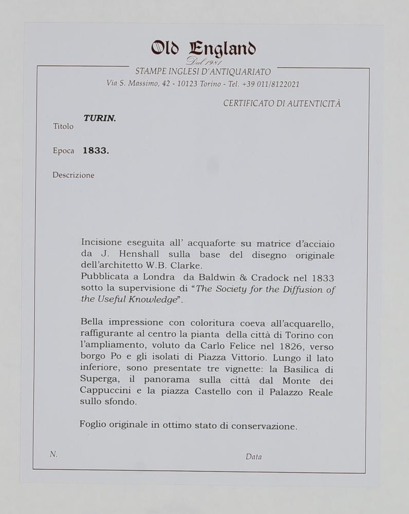 TURIN, 1833 incisione all'acquaforte con acquarellatura coeva, cm 53,5x60,7...