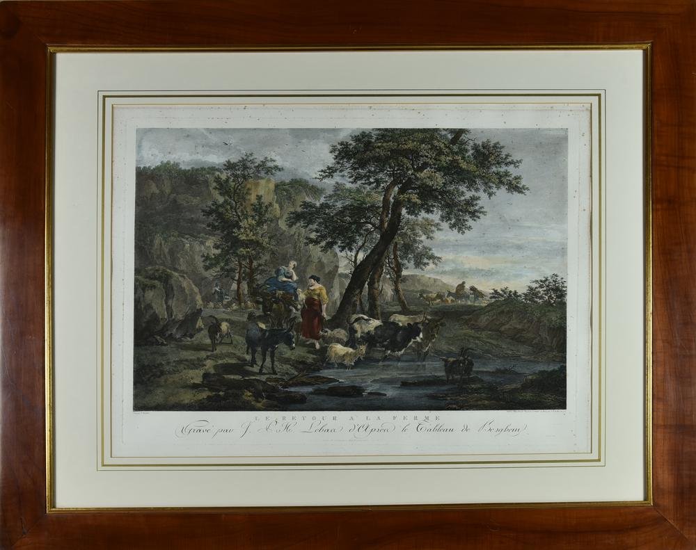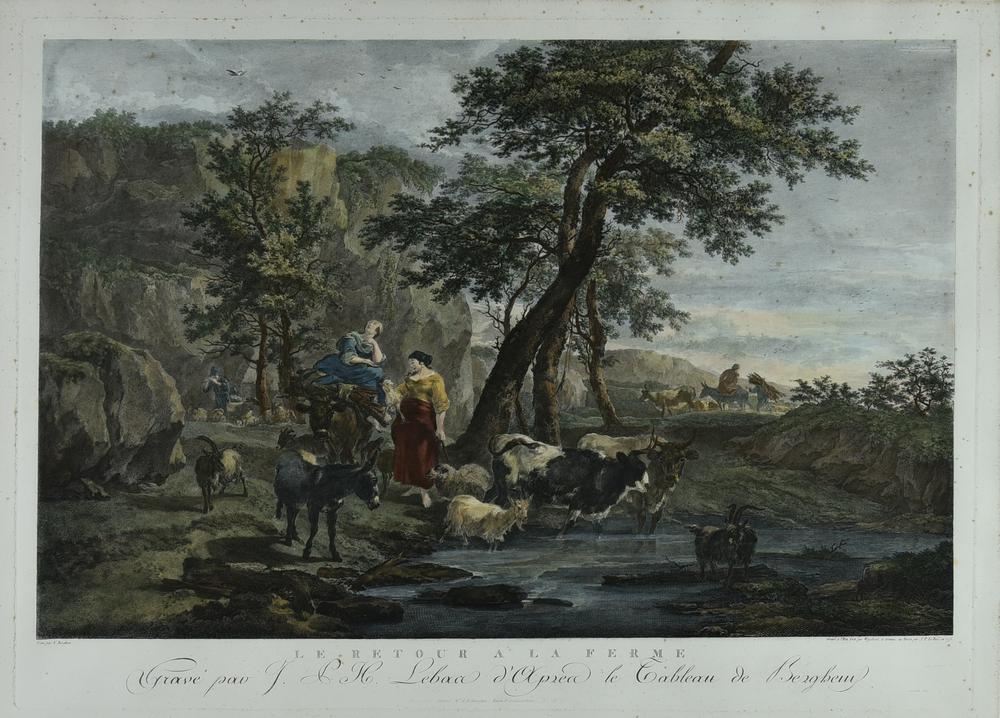 Opera realizzata all'acquaforte da C.W.Weisbrod (1743-1806) sulla base di un dipinto di N.Berchem (1620-1683) e terminata a bulino da J. P. Lebas (1707-1783); pubblicata per la prima volta a Parigi da Alibert nel 1775.