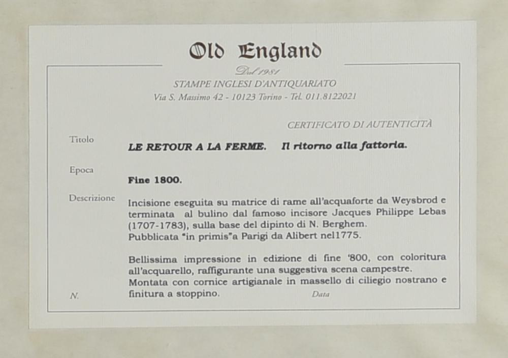 sul retro: certificato di autenticità Old England Gallery, Torino