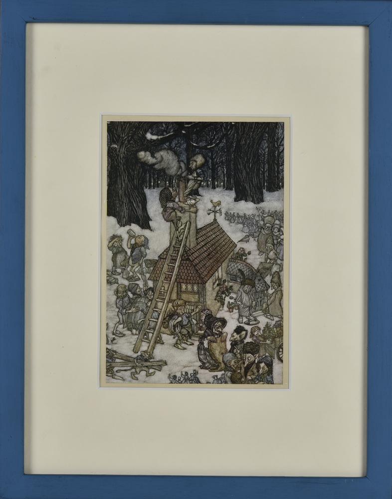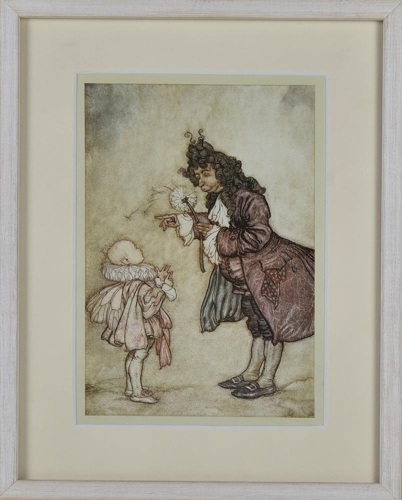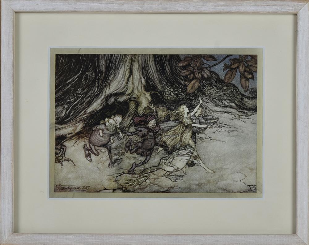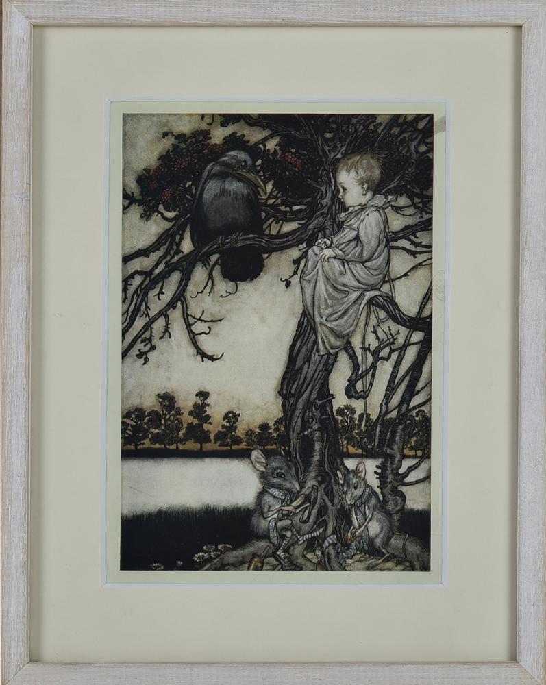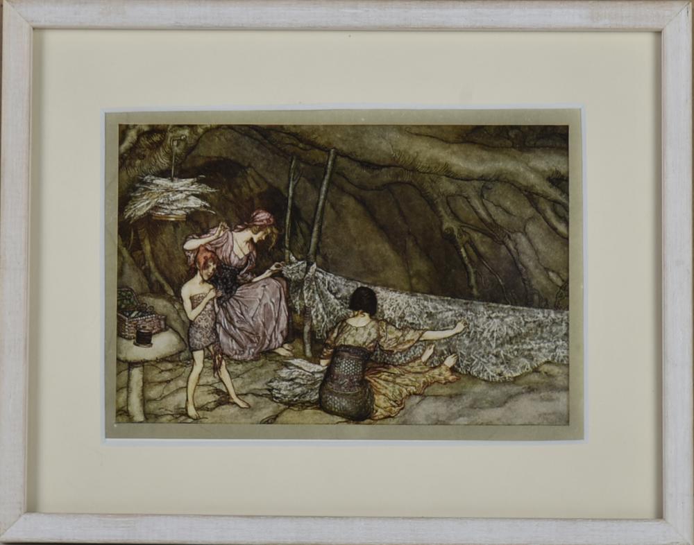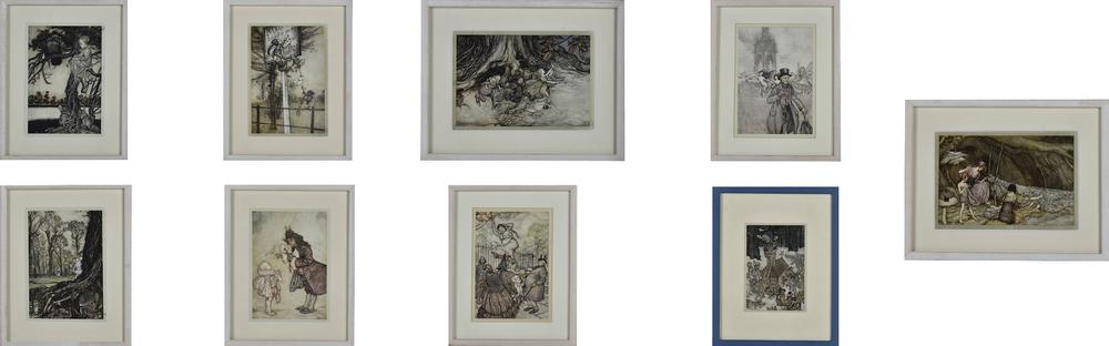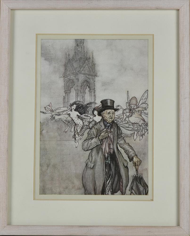 Tavole tratte dalla novella "Peter Pan in Kensington Gardens" di Sir J. M. Barrie (1860-1937), realizzate sulla base dei disegni originali di A. Rackam (1867-1939) e pubblicate a Londra da Hodder & Stoughton.