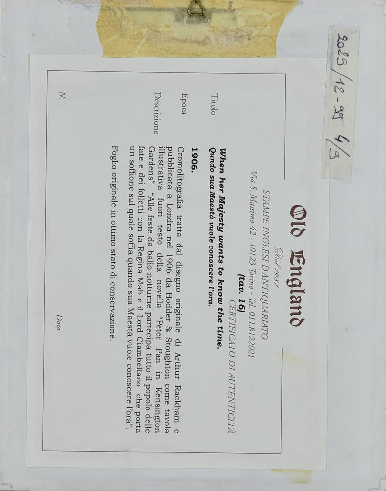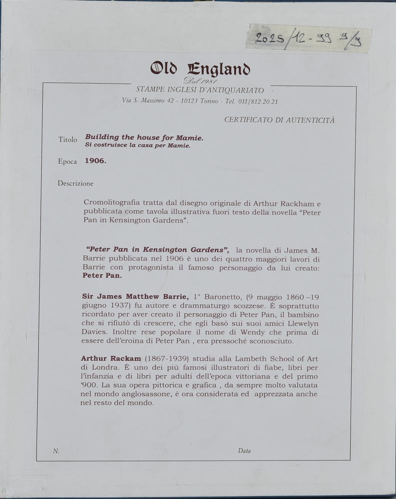 sul retro di ognuno: certificato di autenticità Old England Gallery, Torino