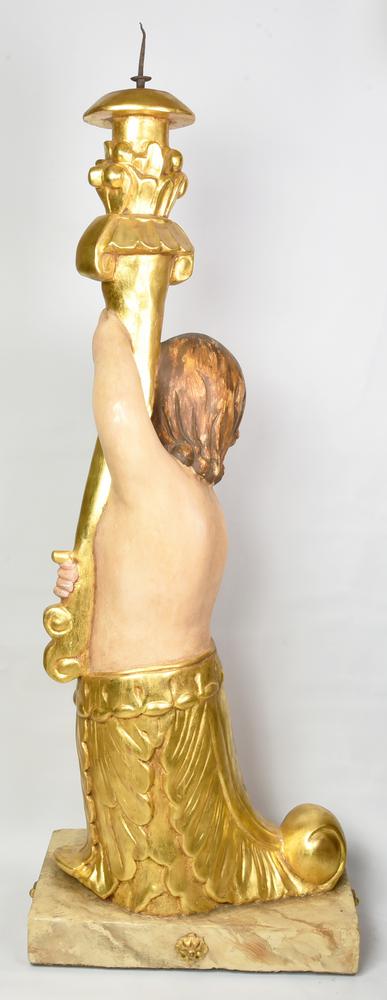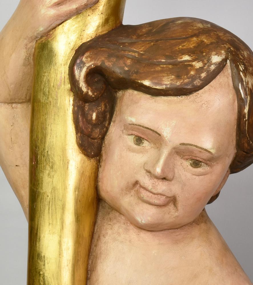 legno intagliato, laccato e dipinto con rivestimenti in foglia d'oro