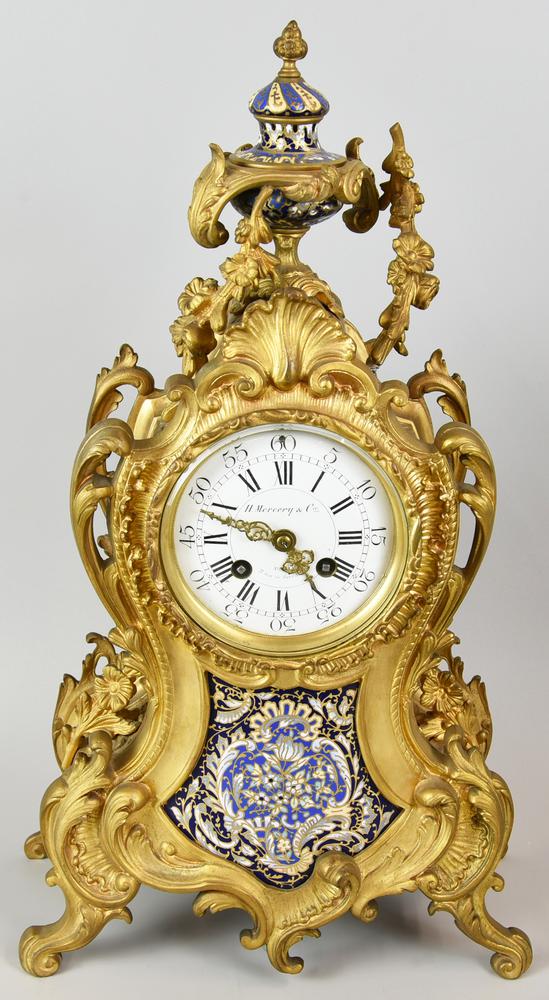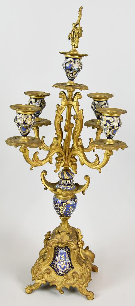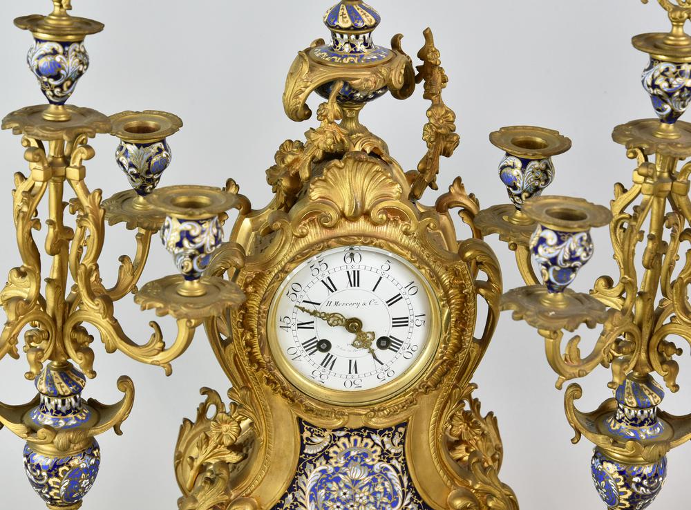 TRITTICO COMPOSTO DA OROLOGIO E DUE CANDELABRI, inizi XX secolo