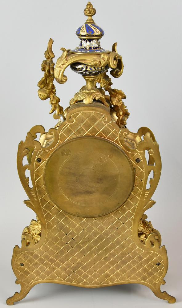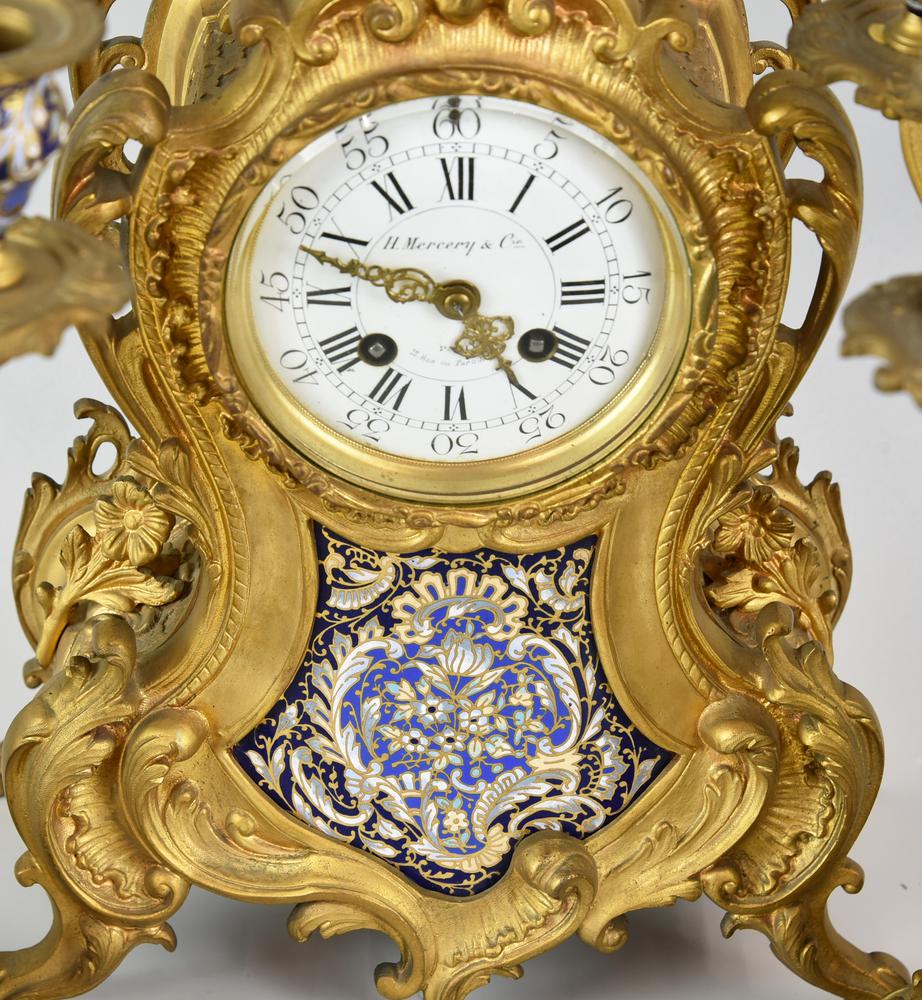 TRITTICO COMPOSTO DA OROLOGIO E DUE CANDELABRI, inizi XX secolo bronzo dorato...