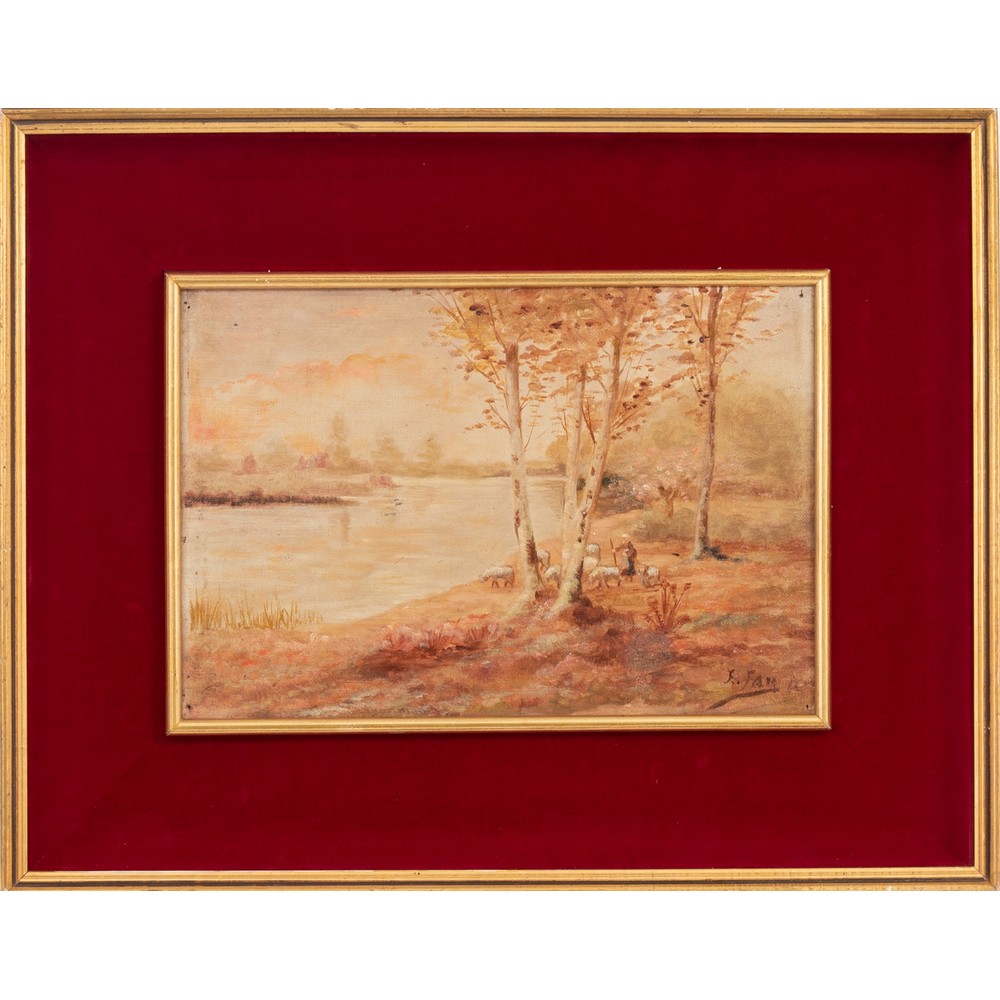 PITTORE DEL XX SECOLO, Paesaggio fluviale, Olio su tela