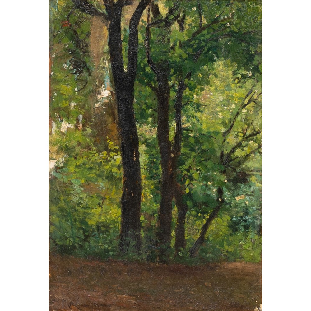 MICHELE CAMMARANO, Paesaggio boschivo, Olio su tavola
