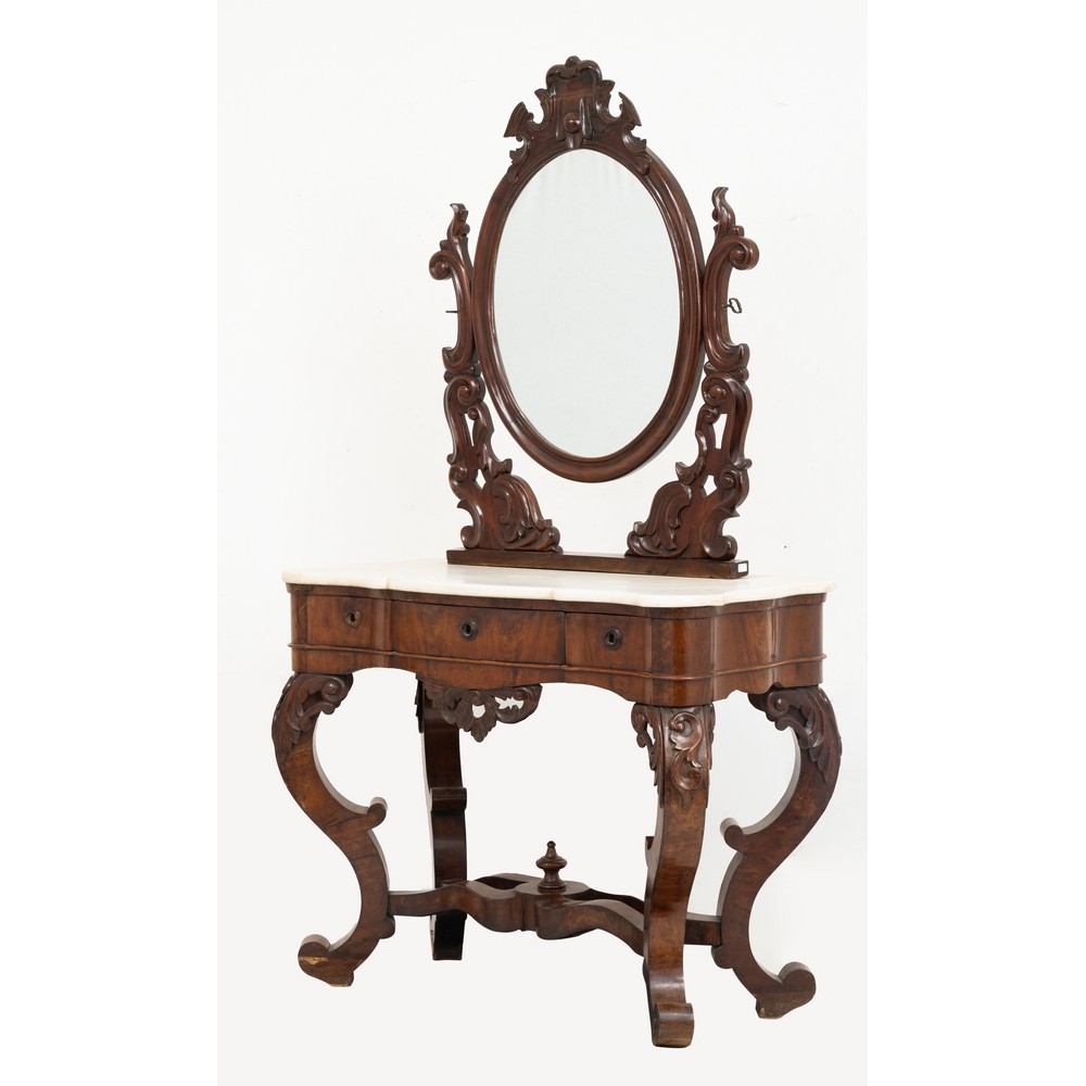 Toletta Luigi Filippo in legno esotico, piano in marmo bianco.