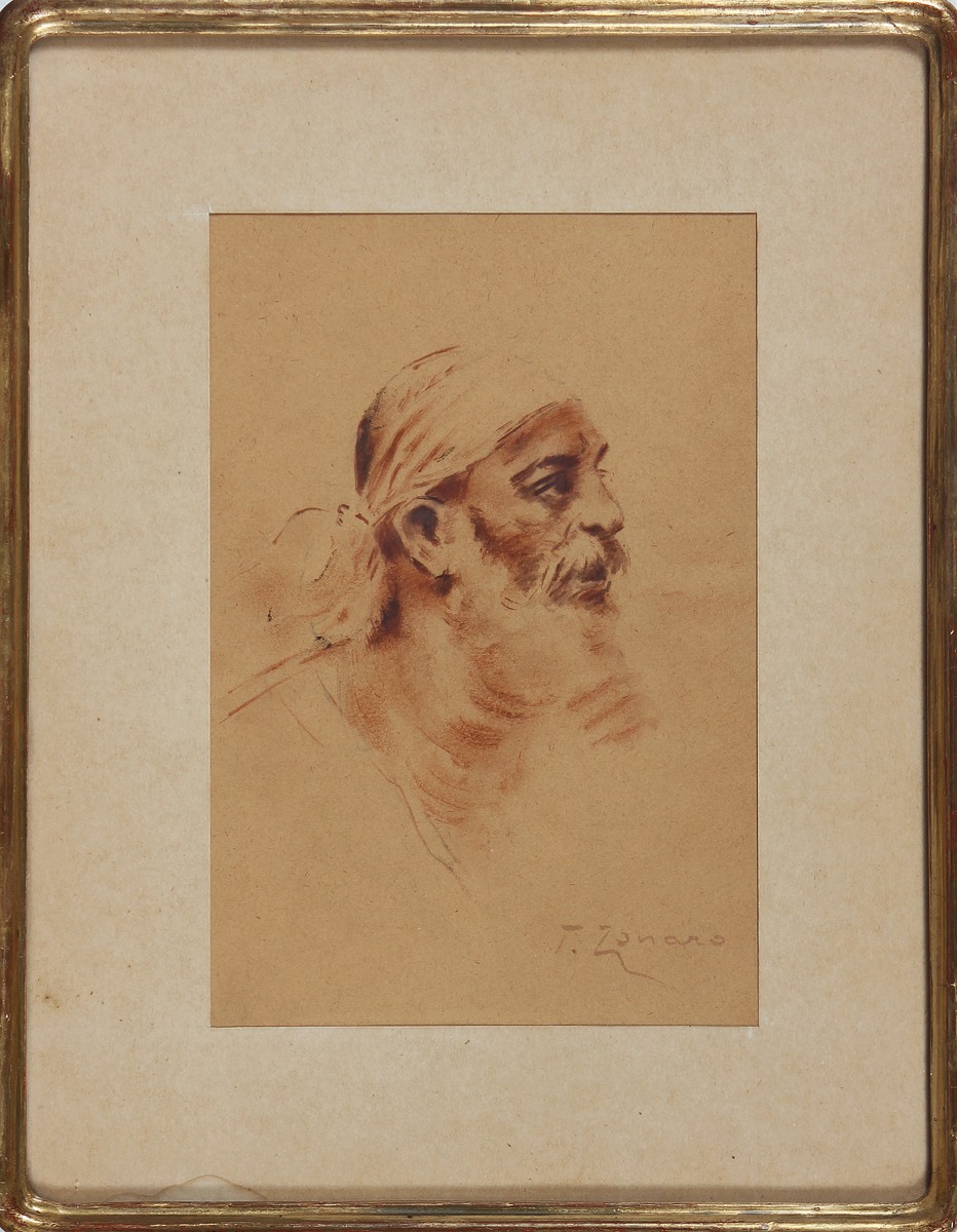 ZONARO FAUSTO (1854 - 1929) Testa di turco. Acquerello su carta. Cm 17,50 x 26,00. Firma in basso a destra.