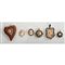 Piccolo ciondolo a forma di cuore in tessuto con perline e "Volto di Cristo", due cammei, ciondolo portafoto in madreperla dipinta e due pendenti in argento con miniatura (usure).