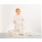 Bambola in celluloide con abito in seta ricamato nei toni del bianco.