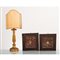 Due composizioni con medaglioni in ceroplastica e ornamenti floreali entro cornici coeve ed un piccolo torciere in legno dorato con ventola in tessuto.