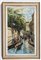 Coppia di due vedute di canali veneziani. 1942. Olio su cartone. Cm 26,00 x 62,00. Sigla G.V. 42 in basso a destra. Cornice presente