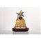 Orologio da tavolo in bronzo dorato con figura di cavaliere orientale, base in legno esotico con tarsie in bosso.